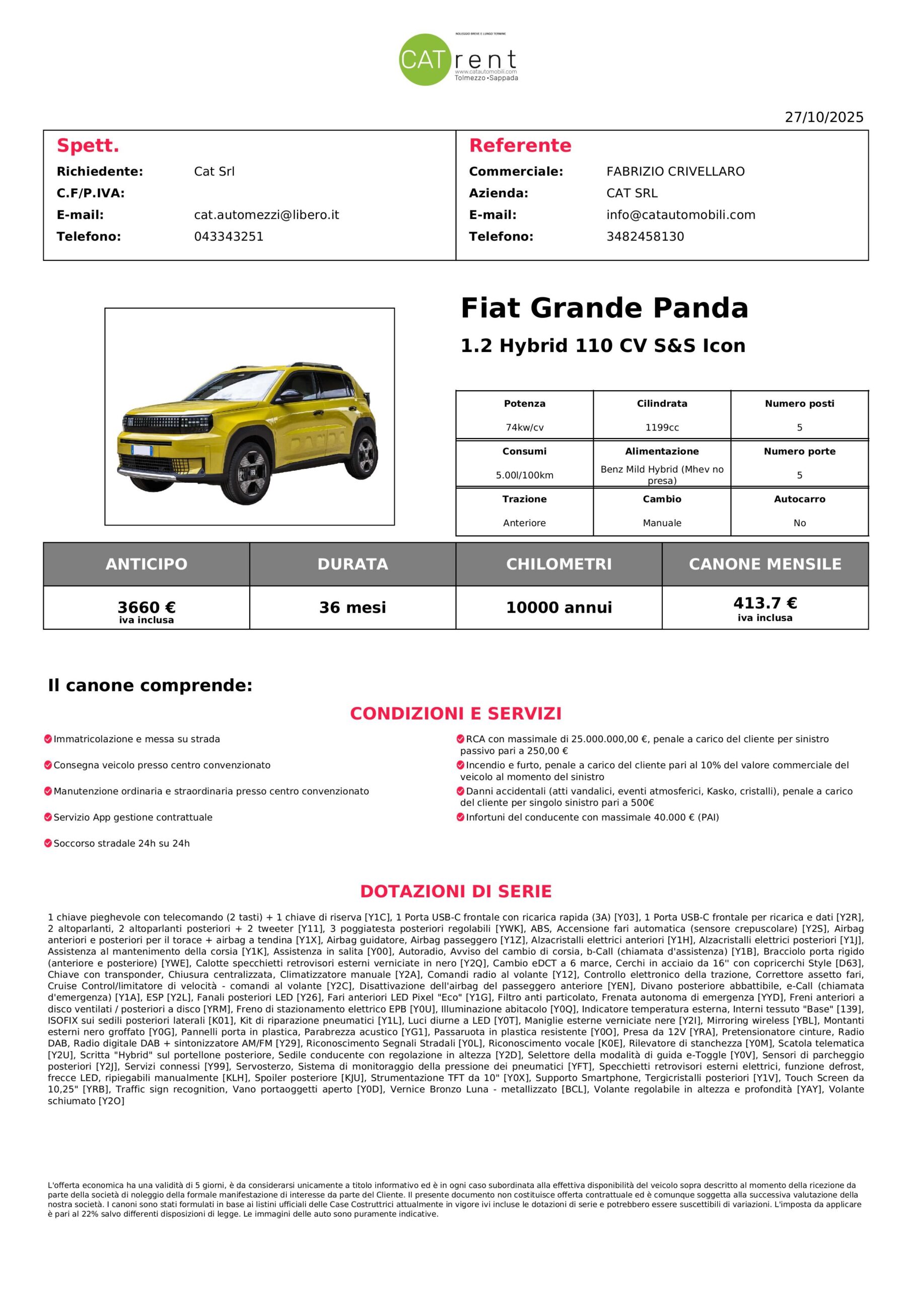 CAT S.r.l. ti fornisce soluzioni personalizzate per ogni tipo di finanziamento, con possibilità di posticipare la rata quando necessario, con maxirata finale o con minirate anche sull’intero importo con anticipo zero a partire da 27,00 € /mese per un auto usata e da 90,00 € / mese per un auto nuova .